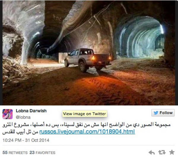 ونشرت لبنى درويش رابطًا من موضوع قديم باللغة الروسية منشورة به نفس الصور، قائلة «مجموعة الصور دي من الواضح إنها مش من نفق لسيناء، بس ده أصلها، مشروع المترو من تل أبيب للقدس».