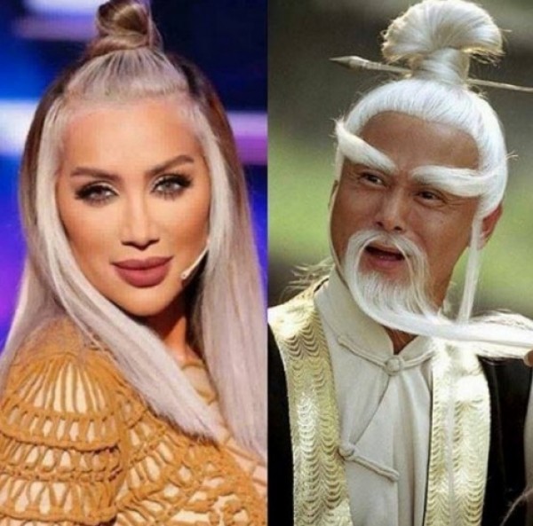 اثارت تسريحة شعر مايا سخرية على “فايسبوك” حيث شبهت صفحة “عديلة” لون وتسريحة شعرها إلى أحد ممثلي الساموراي الصيني، بشعره الابيض و”الكعكة”