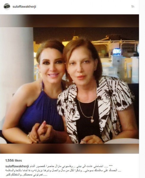 التواصل الاجتماعى "إنستجرام"، معلقة: "ابتسامتى عادت إلى بيتى وقاسيونى مازال حاضرا كحضور الشام، الحمد لله على سلامتك بسومتى، وشكرا لكل من سأل واتصل وشرفنا بزيارته ودعا لماما بالشفا والسلامة".